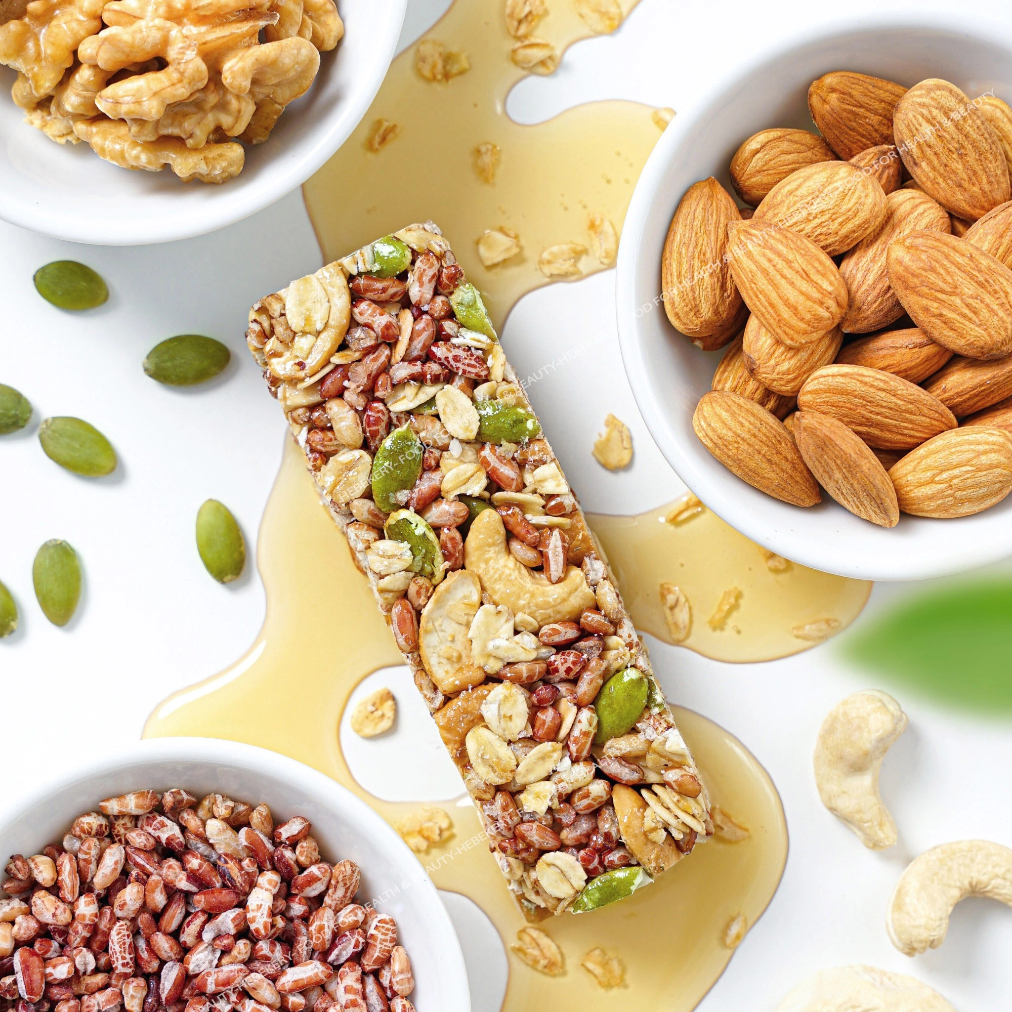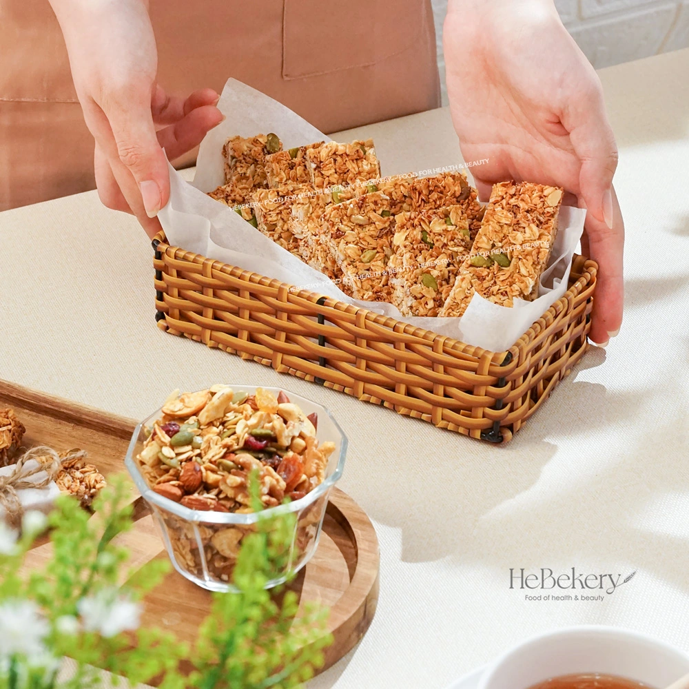 Thanh ngũ cốc gạo lứt là sự kết hợp của các loại hạt dinh dưỡng, gạo lứt và mật ong được nướng giòn tan, thơm bùi.